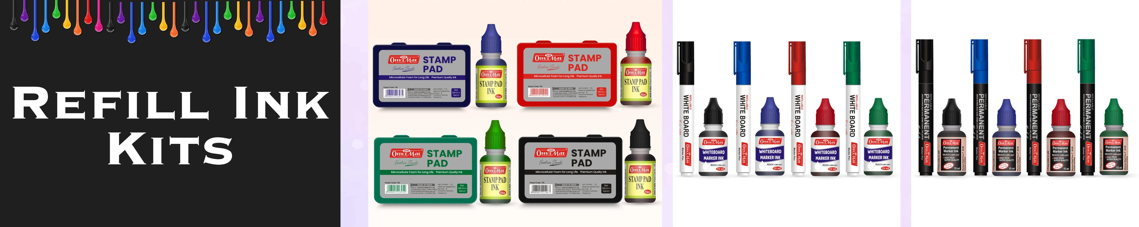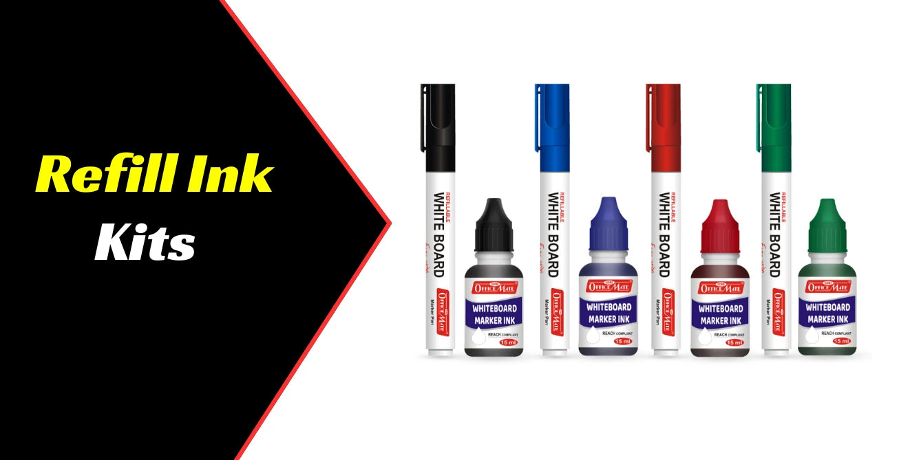 Whiteboard Combo (4 Whiteboard Markers + 4 Marker Inks) Vibrant Colours, Eco-friendly, Easy Wipe