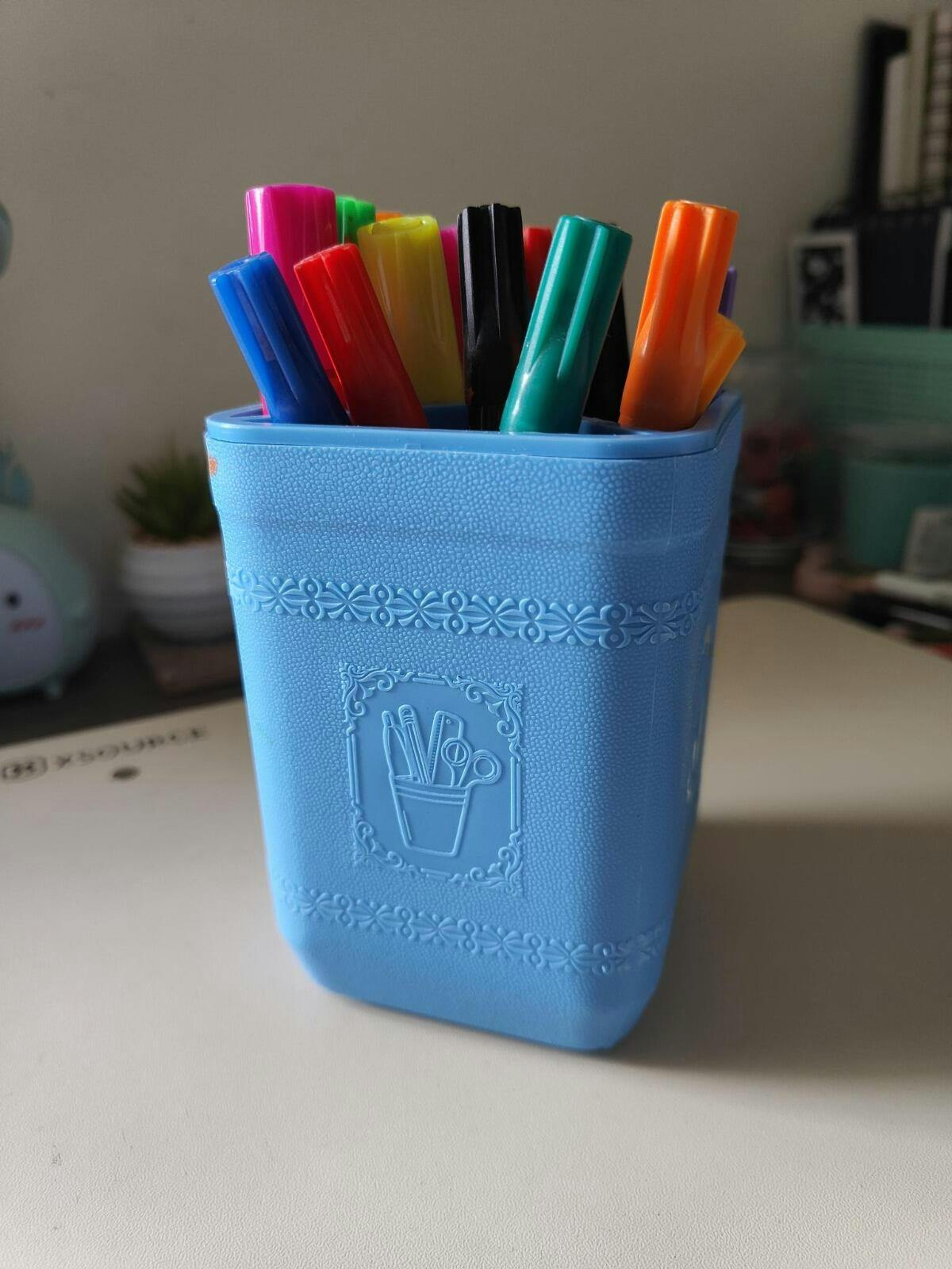 The pen stand is composed of a sturdy, premium plastic. It looks fantastic on a desk thanks to its sleek, contemporary design and smooth finish. It is strong and able to support the weight of several pens, pencils, scissors, etc. without toppling over, even though it is made of plastic. Unlike metal holders, plastic is also easy to clean and resistant to corrosion and rust.