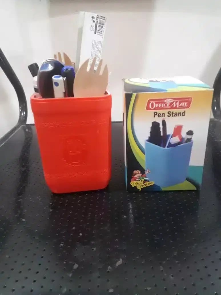 Yes, we have a few different design styles and a range of vivid colours for the pen stand. Black, blue, red, green, and other colors—and occasionally a transparent version—are common choices. Depending on the model line, there are a few pattern variations or logo placements, but overall the design is the same shape. You can pick a colour that complements your personal taste or the design of your office. It is not only useful but also a stylish desk accessory because of its large colour selection.
