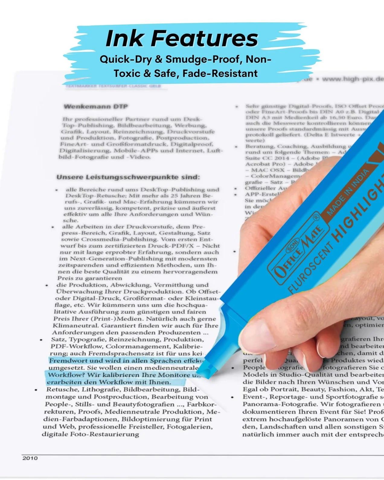 2. Smudge-Proof & Quick-Drying: Ensures clean, streak-free marking on all paper types, including copy and fax sheets.