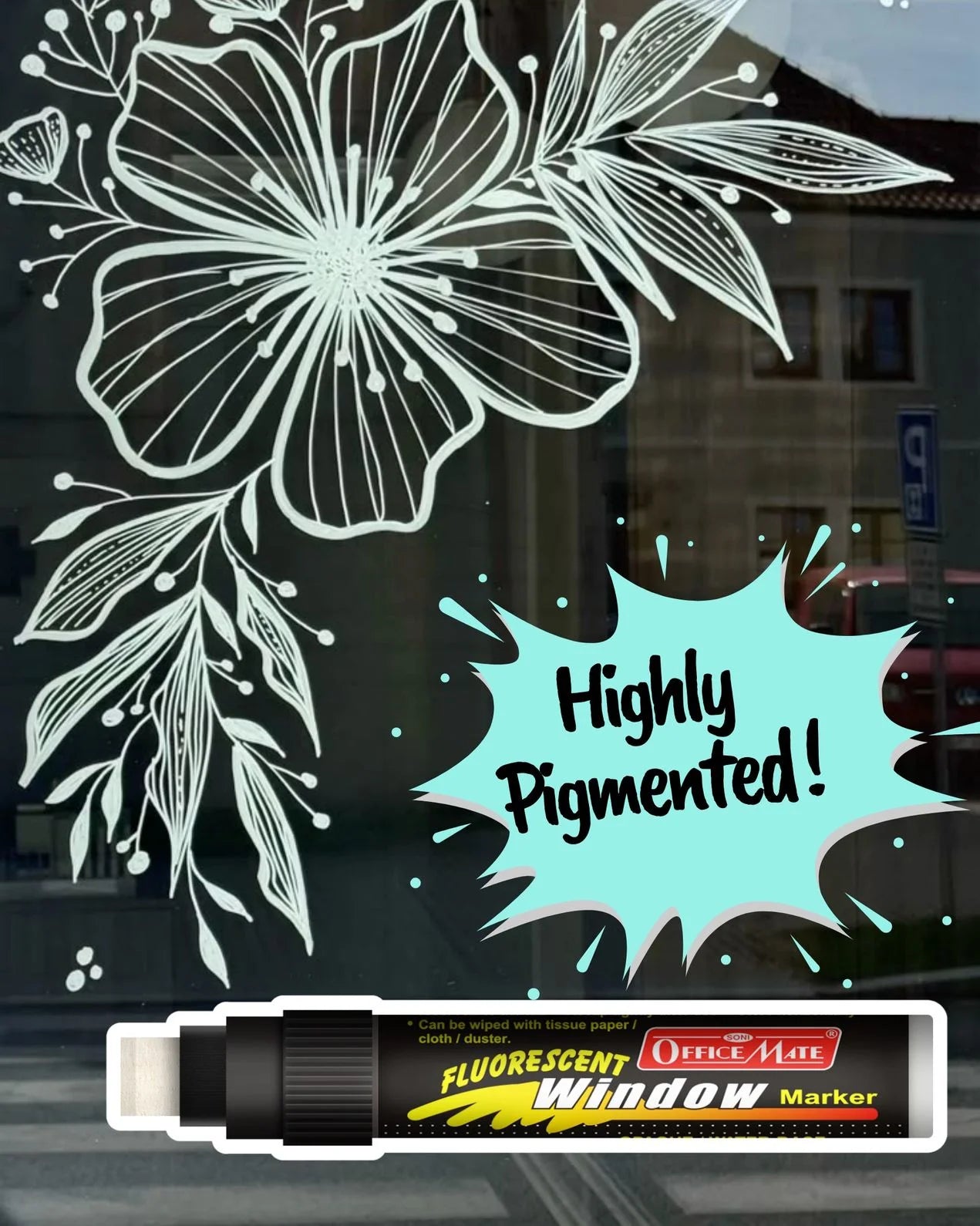 We offer window markers in a variety of vibrant, eye-catching colors that show up beautifully on glass surfaces. Popular shades include white (great for dark-tinted car windows), neon yellow, neon green, neon orange, red, blue, and pink. These fluorescent colors really pop, especially in sunlight, making your messages or designs stand out. Some sets also include black for outlining or adding contrast. All of our window marker colors are easy to wipe off and completely washable from glass. Using multiple colors makes your window art or signage even more attention-grabbing and fun!