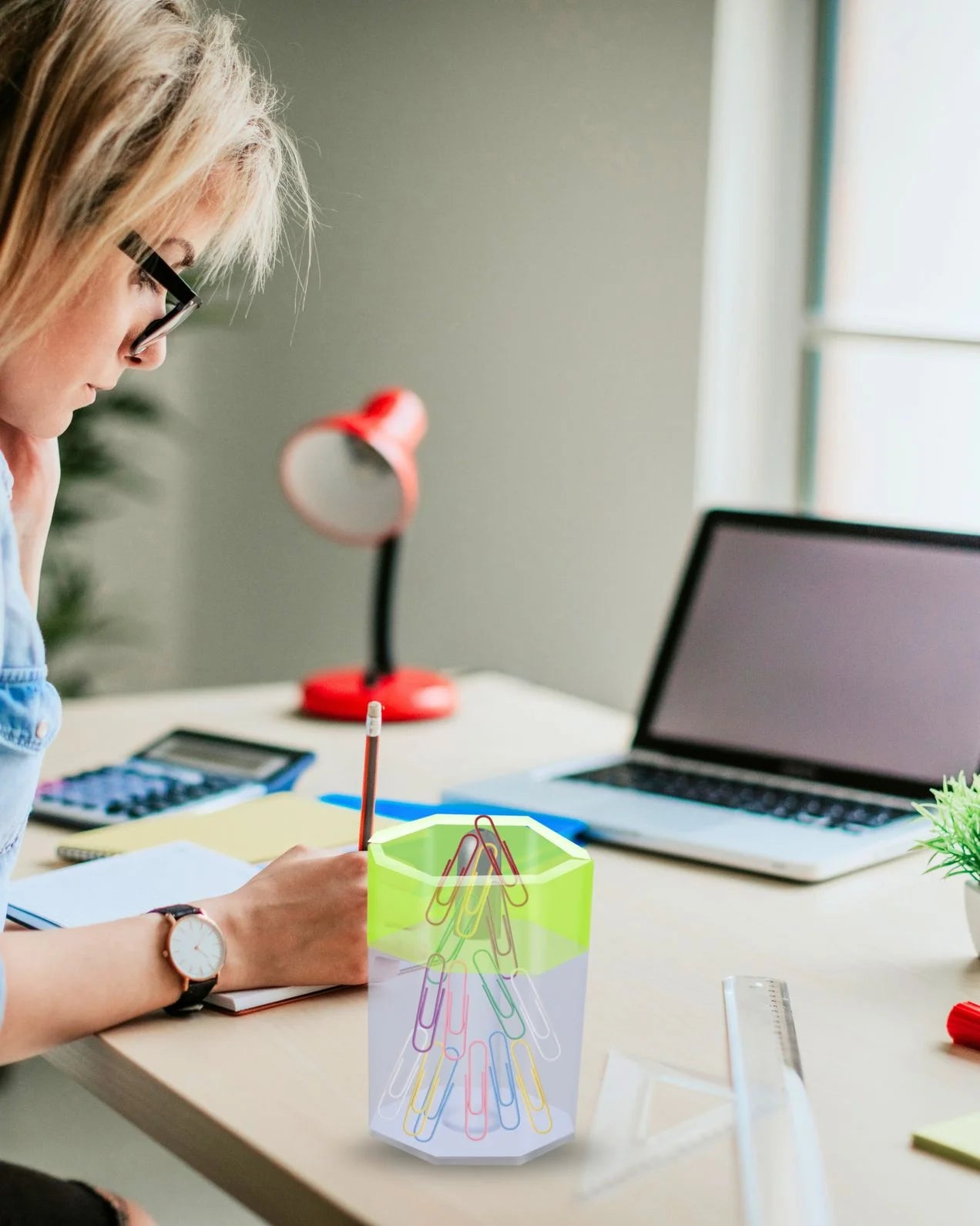 Yes, the magnet in the dispenser is quite strong for its purpose. It will securely hold the pins and clips on the top of the dispenser so they don’t easily fall off even if the desk is bumped. If you overload it significantly beyond its intended capacity, excess pins might slide off simply due to crowding, but under normal loads (around 100 pins or a couple dozen clips) it holds them well. Additionally, the dispenser has a detachable compartment below – any extra pins or clips that you throw in there will naturally be caught by the magnet if they try to escape, or they stay in the cup, making the whole system tidy.