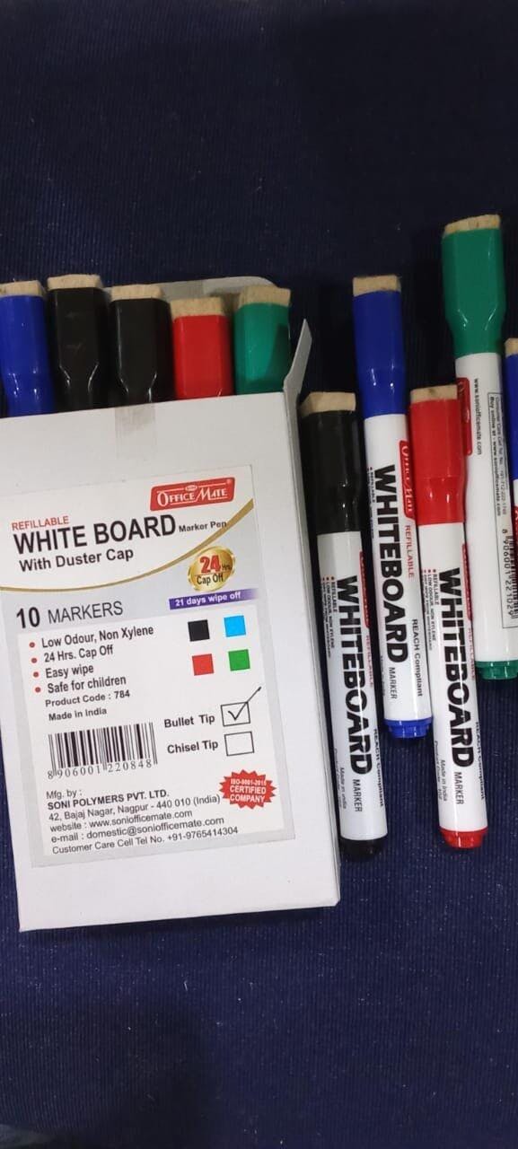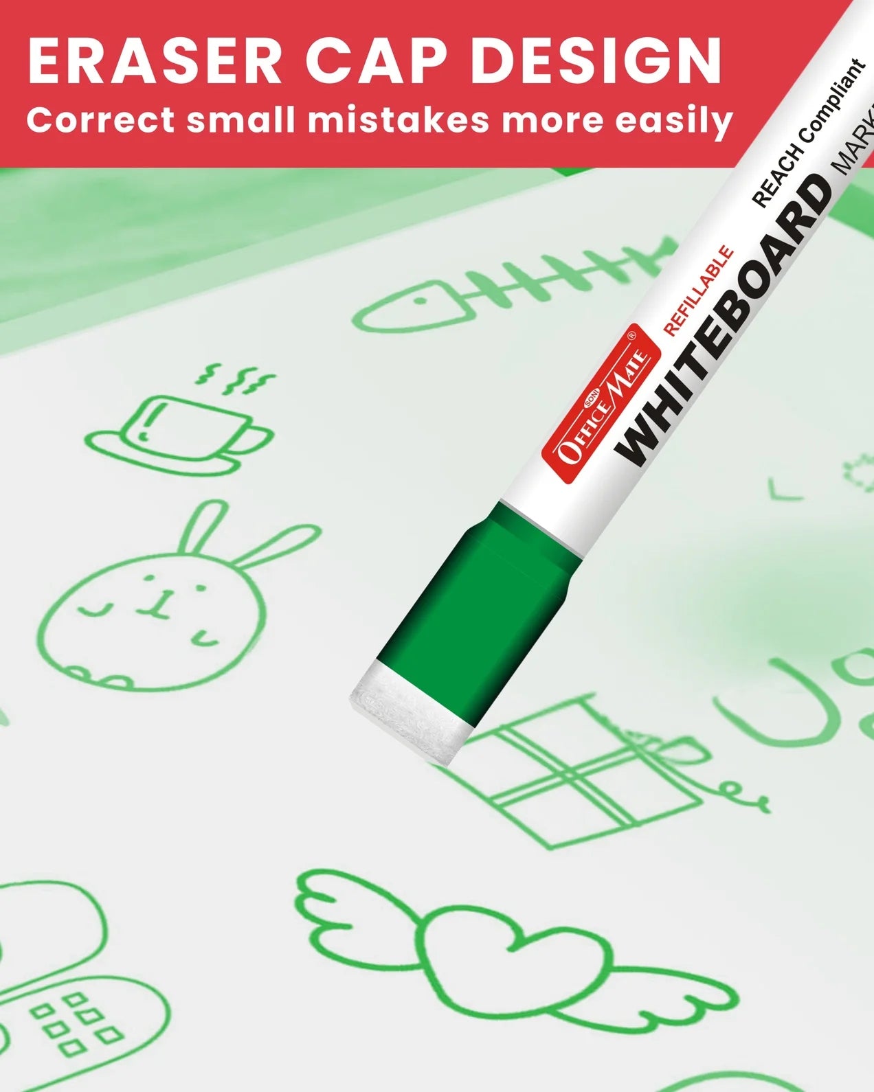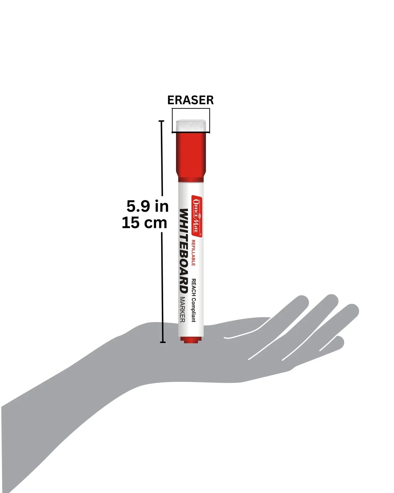 Regular Whiteboard Marker with Duster on cap ( 10 pcs ), Vibrant Colours, Eco-friendly, Easy Wipe