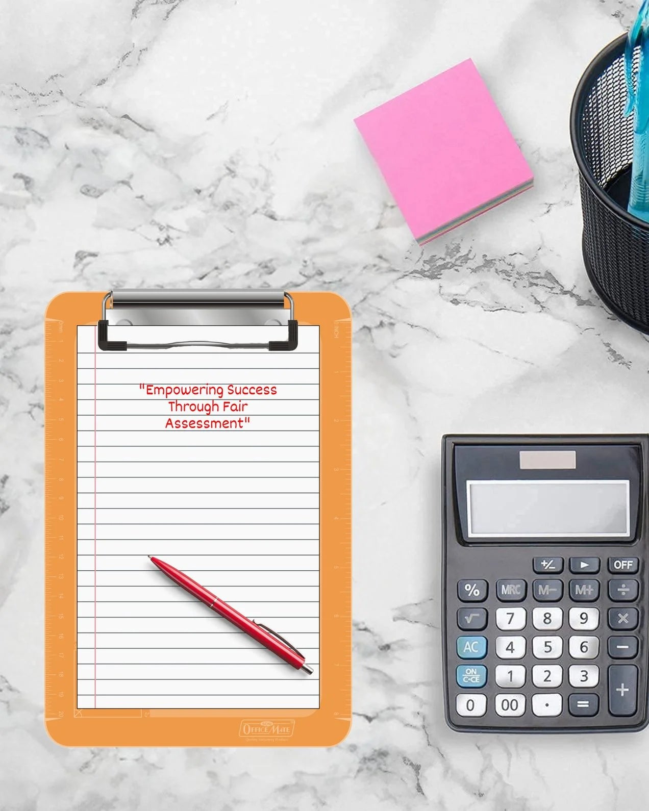 Yes, there is a sturdy metal clip on top of the exam board. Your papers, exam sheets, or forms can be firmly held in place with this clip's sturdy spring mechanism. A respectable stack (several sheets to perhaps 100 pages) can usually be clamped by it. To prevent tearing the paper, the clip frequently has a smooth edge or rubberised tip. This guarantees that your paper won't slip or fly away while you're writing, even if you're moving around or there's a breeze (important for coaches holding play sheets or in outdoor exam situations). In essence, the clip is what transforms a basic board into a useful clipboard, and ours is made to be dependable and durable.
