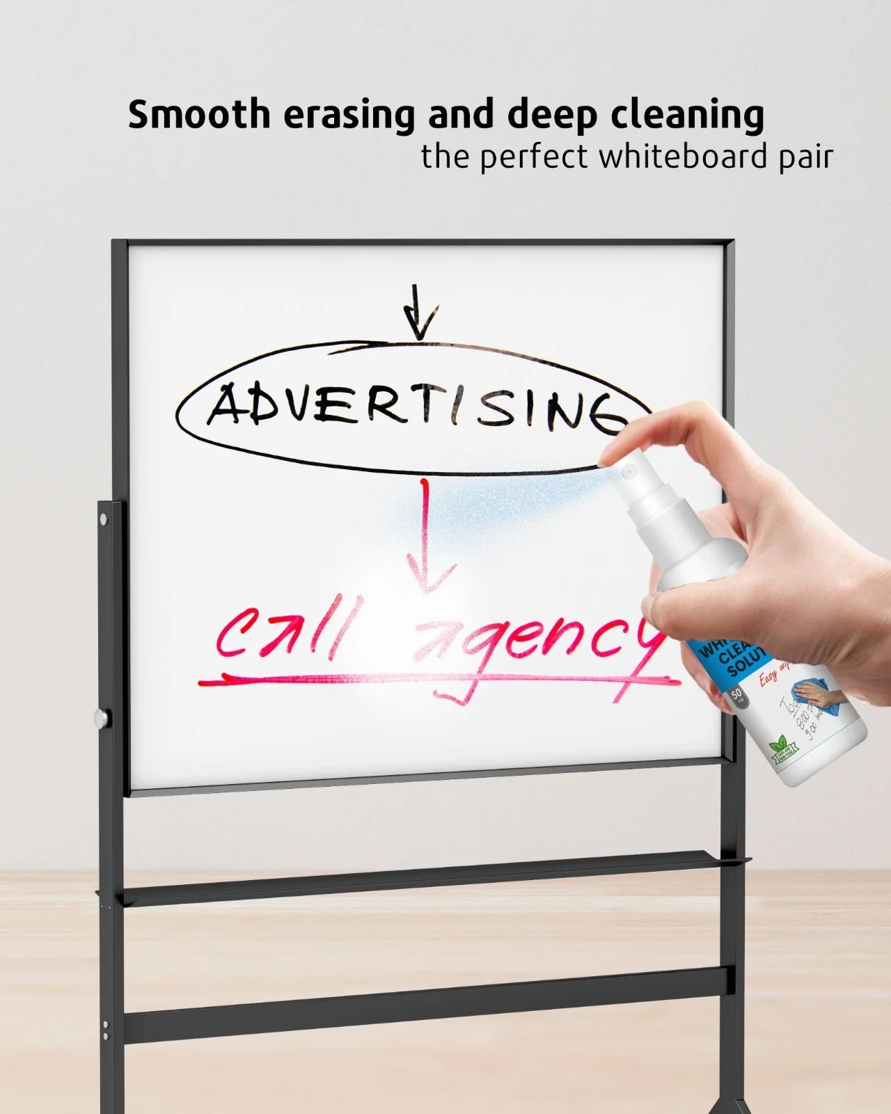 An 8 oz (240 ml) bottle usually lasts several months when used regularly. If you clean a medium-sized board once a week, for instance, you may use a few sprays each time; that bottle may last three to four months or longer. Naturally, the size of your board and the amount of spray you use will determine this. You can finish it more quickly—possibly in a month or two—if you have several large boards and clean them often, like every day. However, the bottle lasts a long time for the majority of individual or single-office use cases. You don't need to use a lot of it for each cleaning because it's an effective concentrated formula.