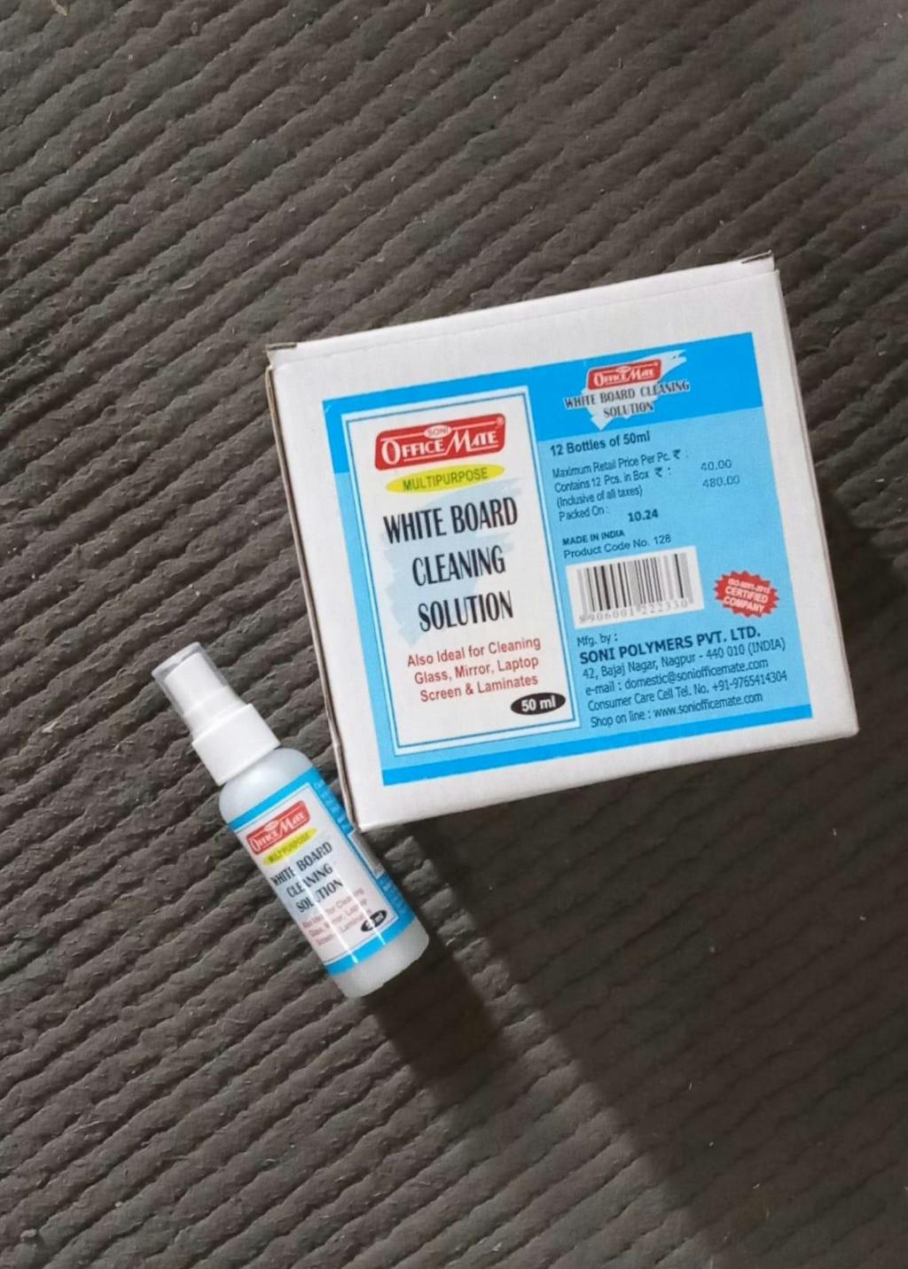 An 8 oz (240 ml) bottle usually lasts several months when used regularly. If you clean a medium-sized board once a week, for instance, you may use a few sprays each time; that bottle may last three to four months or longer. Naturally, the size of your board and the amount of spray you use will determine this. You can finish it more quickly—possibly in a month or two—if you have several large boards and clean them often, like every day. However, the bottle lasts a long time for the majority of individual or single-office use cases. You don't need to use a lot of it for each cleaning because it's an effective concentrated formula.